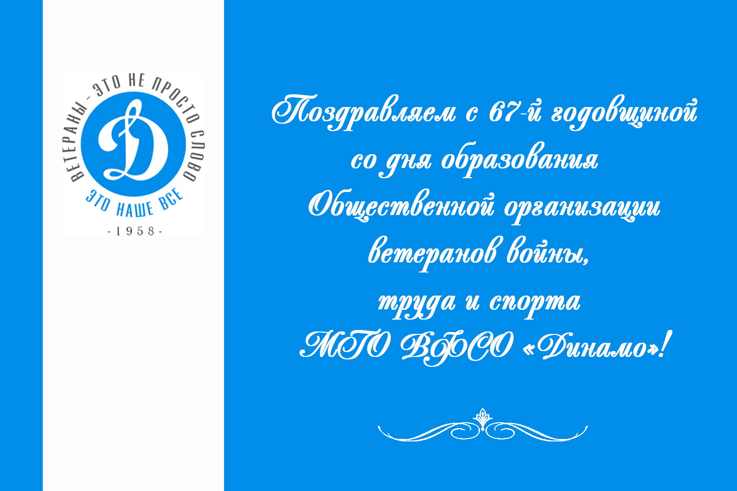 Примите искренние поздравления с 67-й годовщиной со дня образования ветеранской организации МГО ВФСО «Динамо».