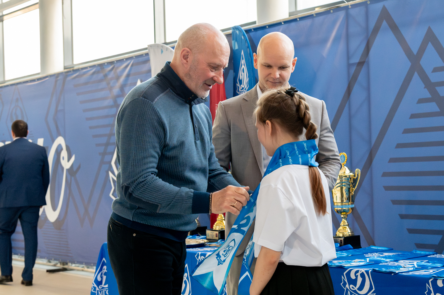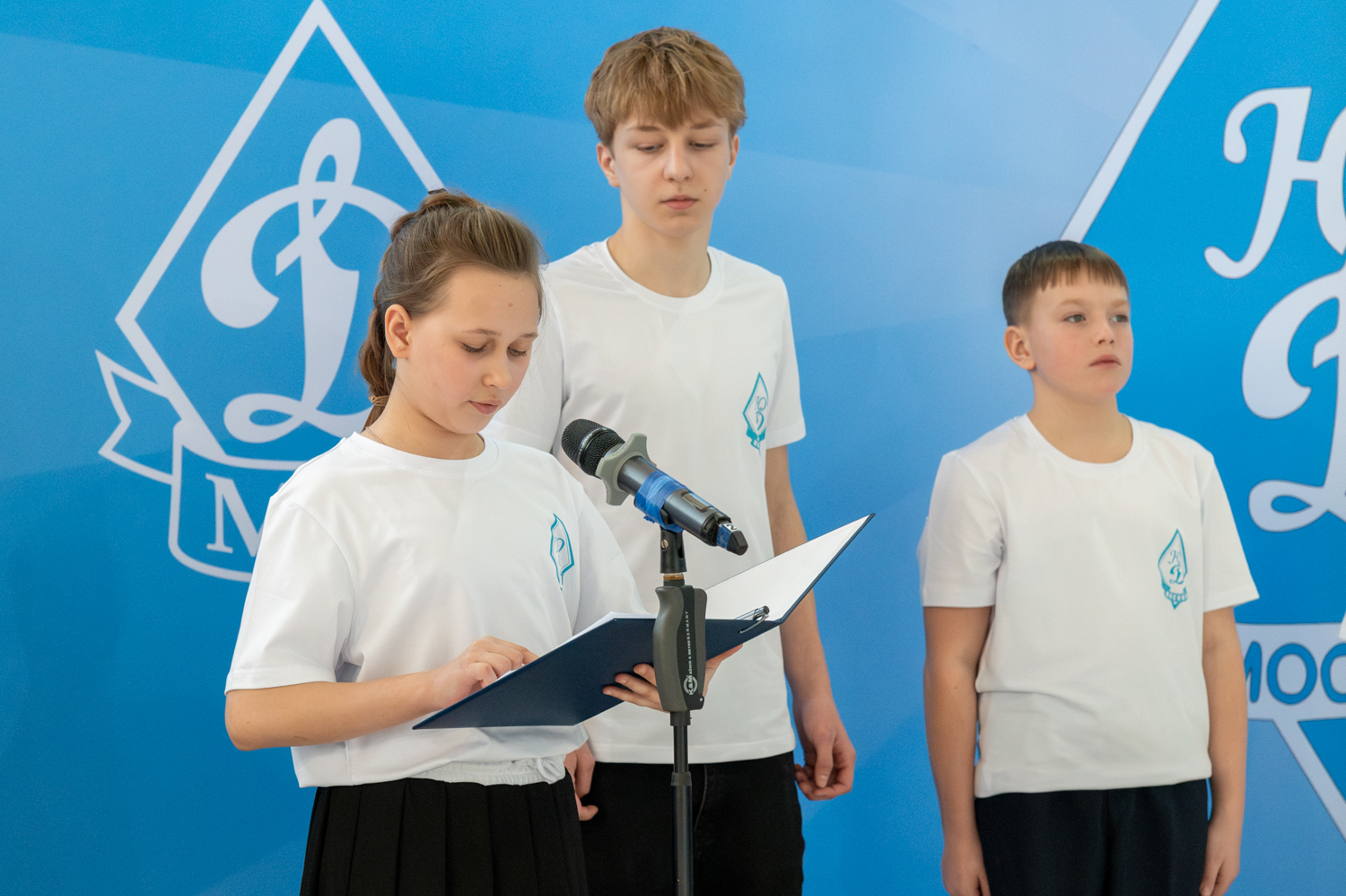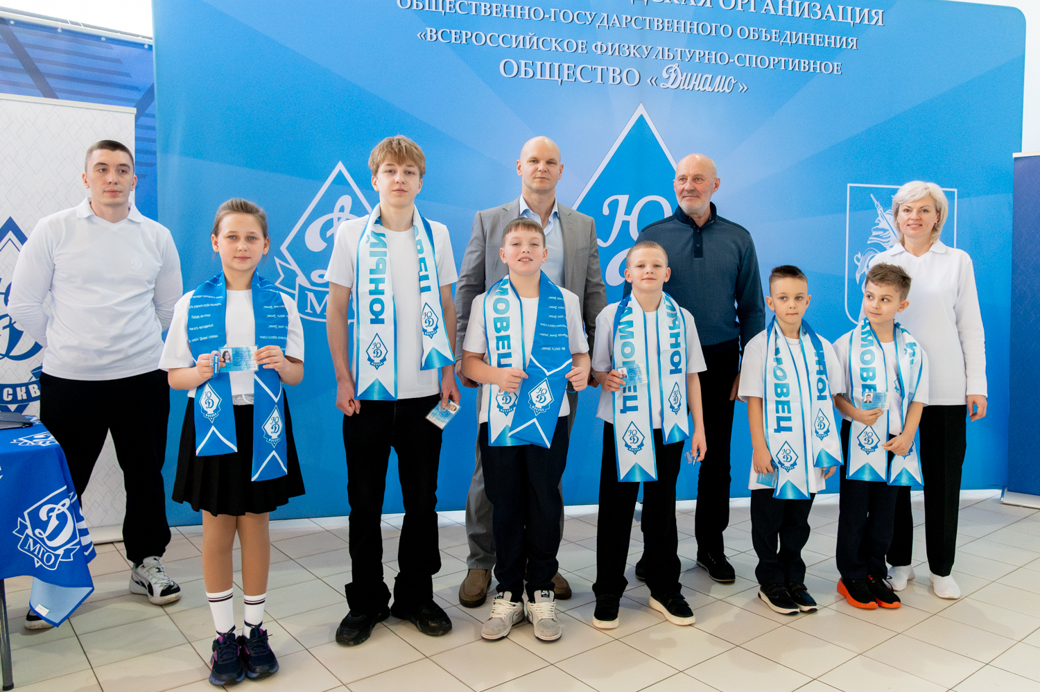 Далее прошло торжественное посвящение в коллектив «Юный динамовец» шестерых ребят. Это событие стало важным шагом в их жизни, символизируя приобщение к истории и традициям легендарного спортивного Общества.