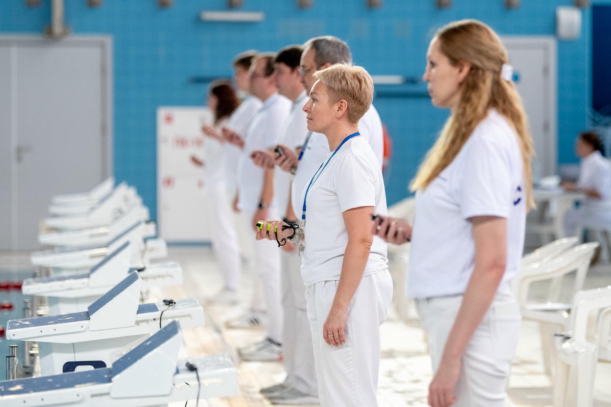 Сразу после завершения официальной части на дорожках бассейна развернулась нешуточная спортивная борьба. Каждый заплыв сопровождался яркими эмоциями участников и активной поддержкой болельщиков.