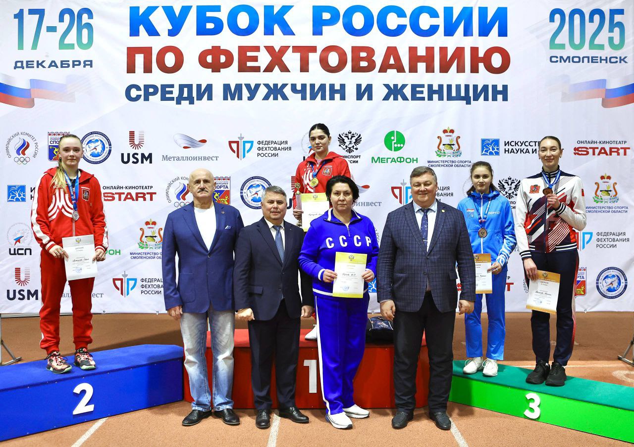 21 декабря в Смоленске прошел Кубок России по фехтованию на шпагах, где в личном первенстве воспитанница фехтовального клуба «Динамо-Москва» Муртазаева Айзанат завоевала золото и стала обладателем Кубка России 2025 второй год подряд!