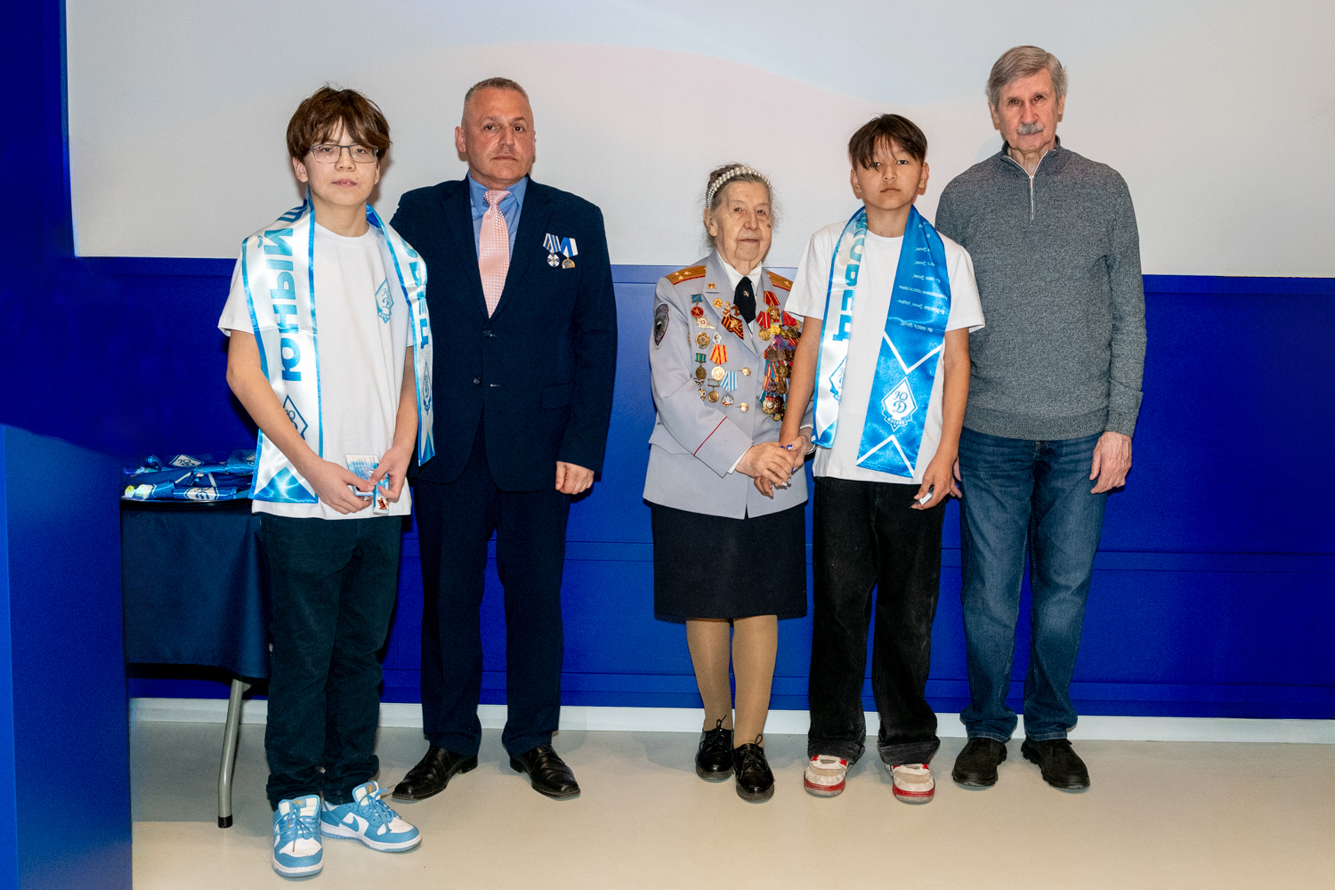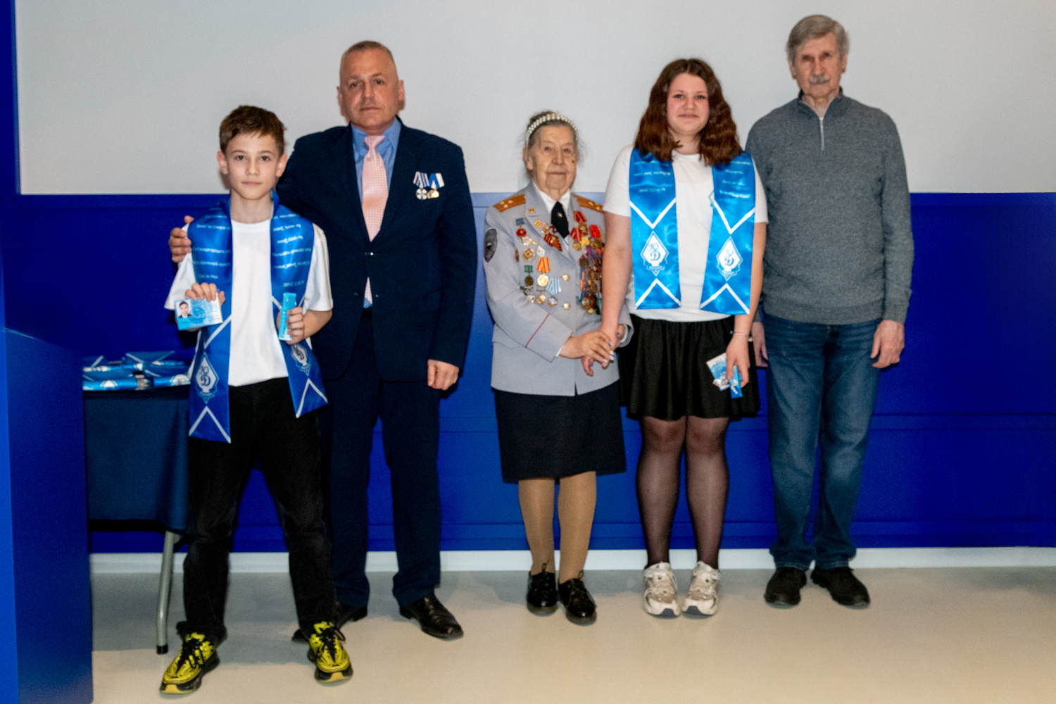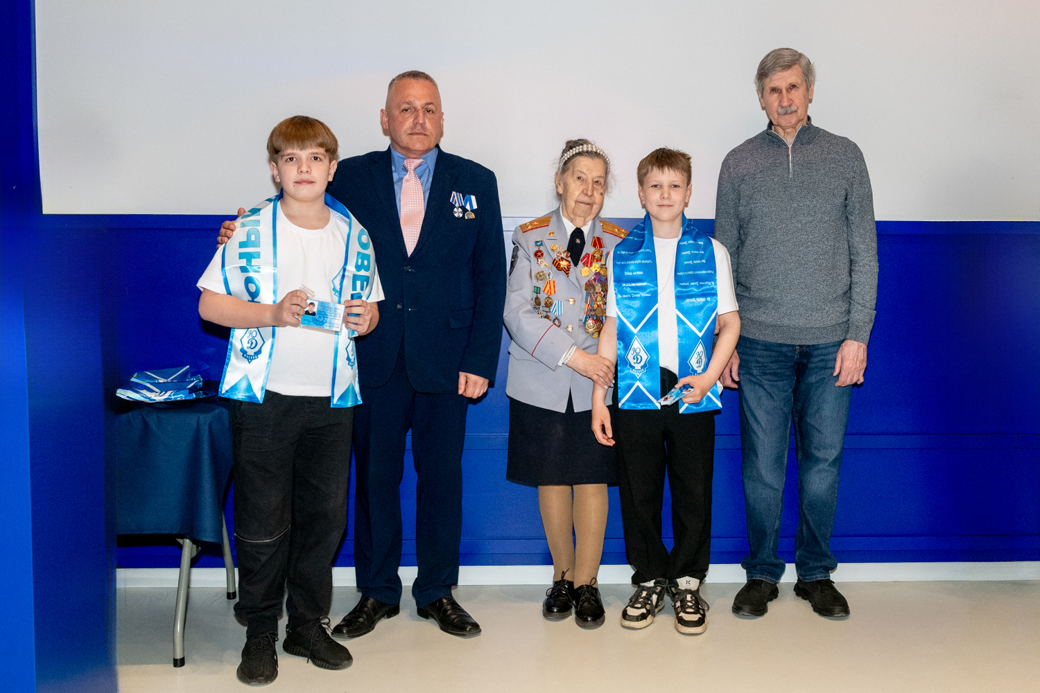 Ребятам были вручены нагрудный знак «Юный динамовец», именная членская карта, а также двусторонний шарф в динамовских цветах.
