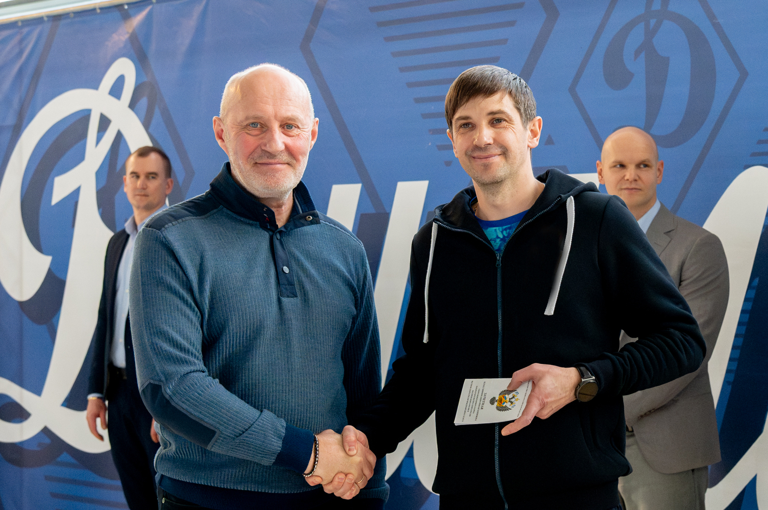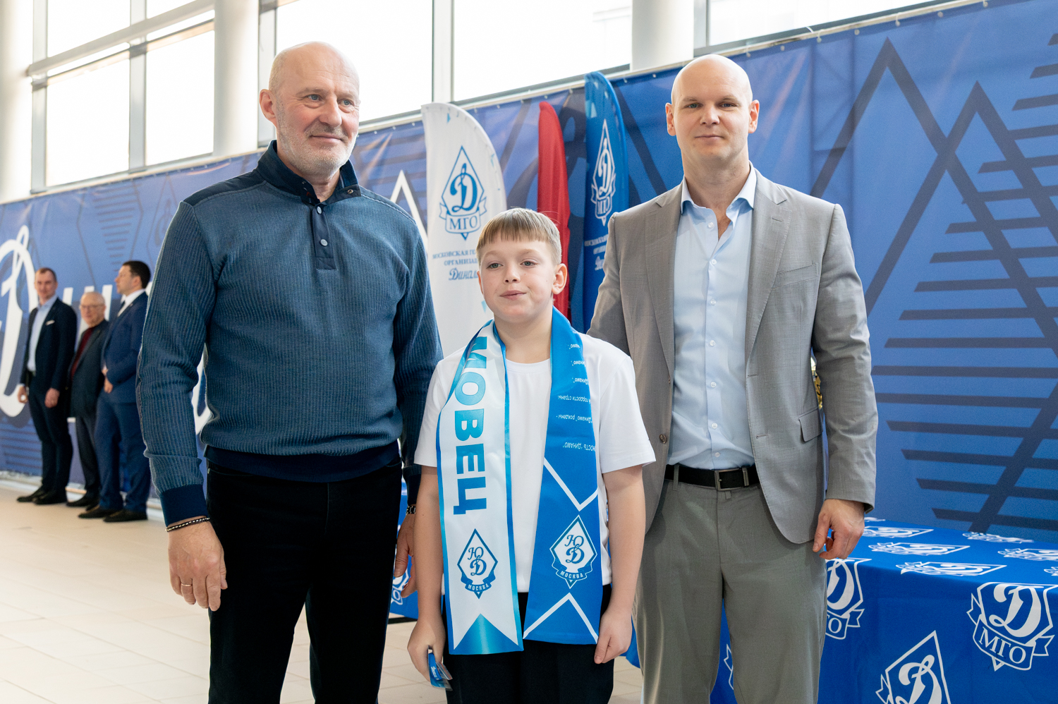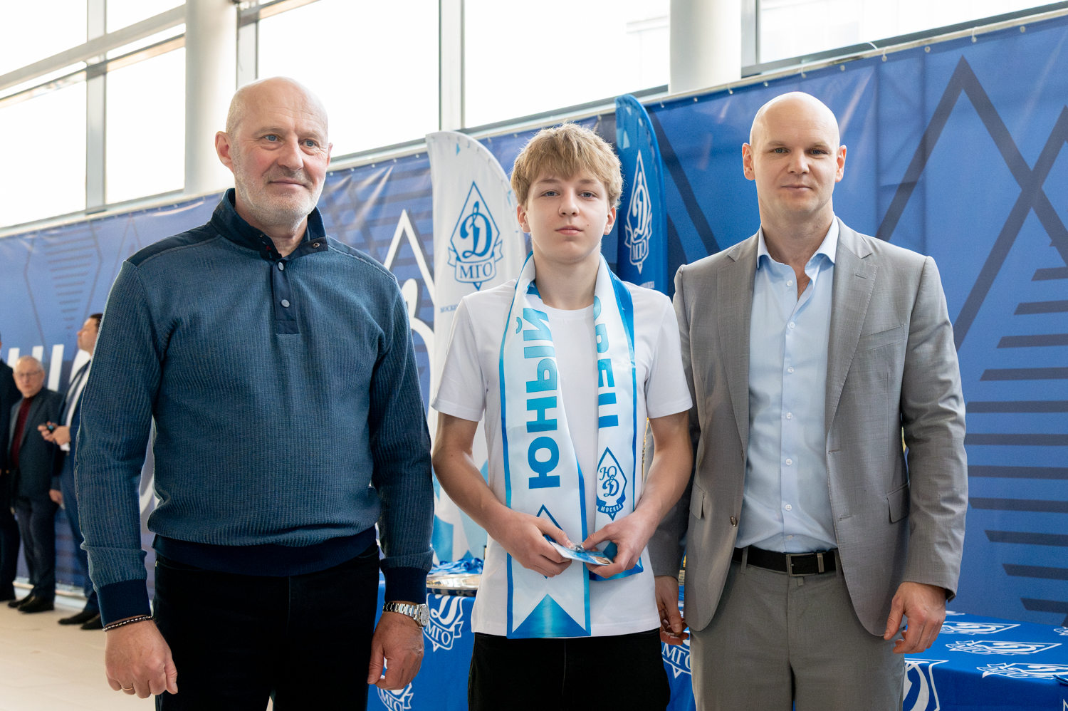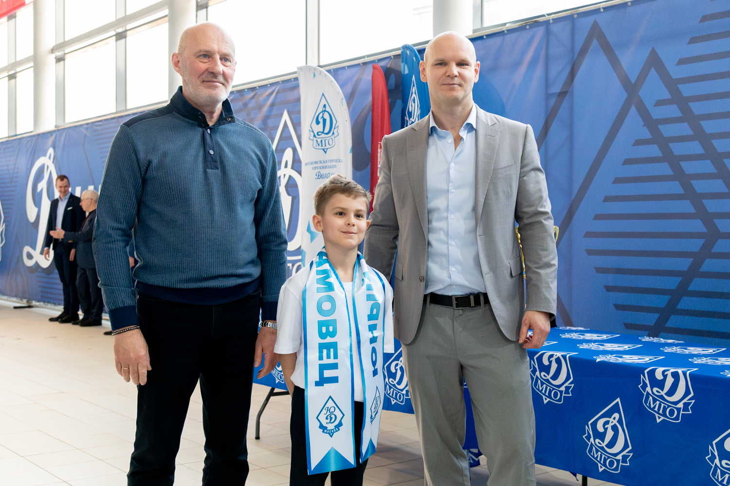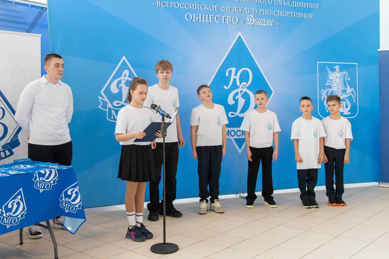 Далее прошло торжественное посвящение в коллектив «Юный динамовец» шестерых ребят. Это событие стало важным шагом в их жизни, символизируя приобщение к истории и традициям легендарного спортивного Общества.