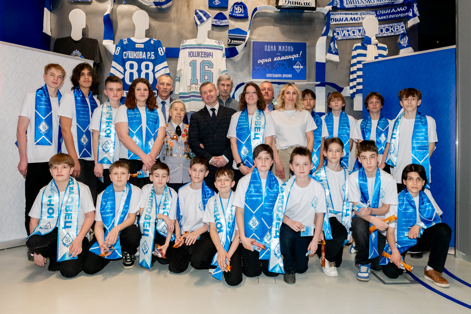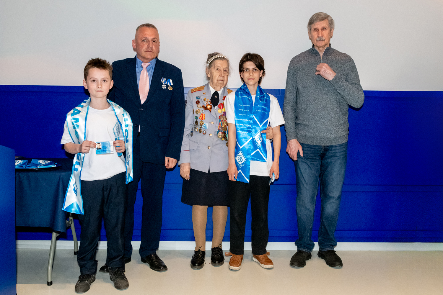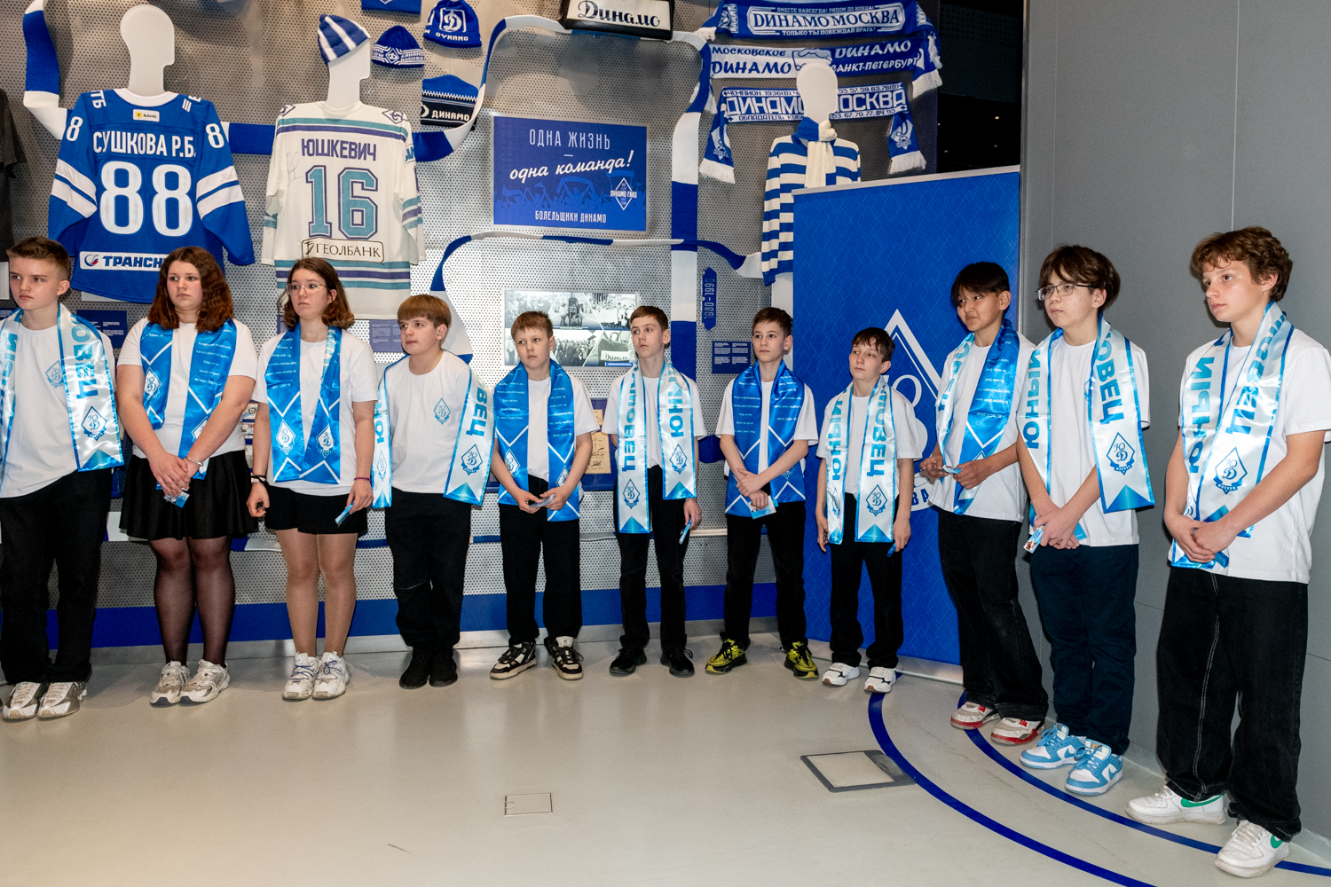 Ребятам были вручены нагрудный знак «Юный динамовец», именная членская карта, а также двусторонний шарф в динамовских цветах.