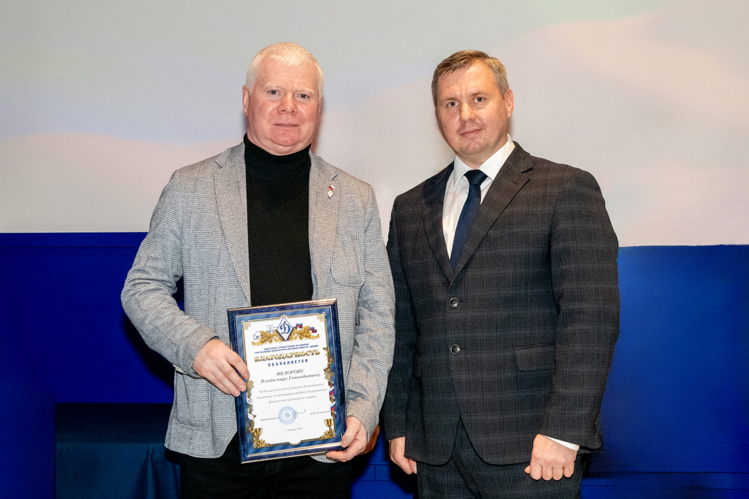 С напутственными словами к юным спортсменам обратились почетные гости и ветераны динамовского движения. В торжественной церемонии приняли участие: первый заместитель председателя МГО ВФСО «Динамо» Павел Владимирович Мальцев, генеральный директор АНО ЦСП «Динамо» Олег Юрьевич Яцына; мастер спорта международного класса по футболу, призёр Олимпийских игр, призёр чемпионата Европы, чемпионатов СССР, обладатель Кубка СССР Владимир Михайлович Пильгуй, мастер спорта по легкой атлетике, полковник милиции в отставке, ветеран Общества «Динамо», заслуженный ветеран МВД России Раиса Борисовна Сушкова и сопредседатель Ассоциации ветеранов Комитета государственной безопасности СССР Дмитрий Дмитриевич Уразов.